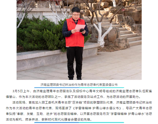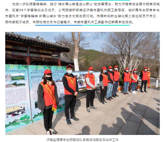 “學(xué)雷鋒精神 護青山綠水”——濟南監(jiān)理青年志愿者參加市直機關(guān)團工委助力生態(tài)文明志愿行動